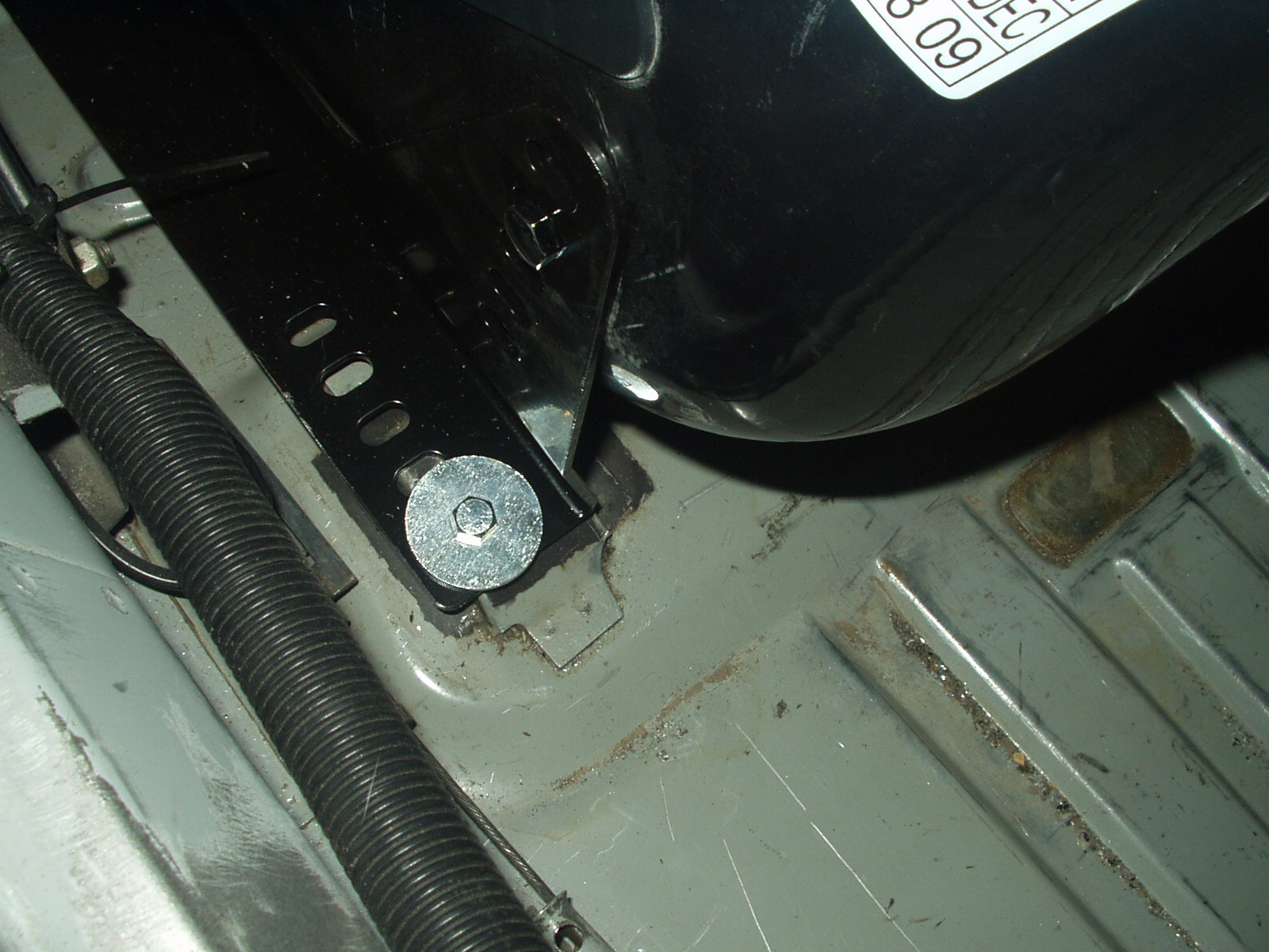 The Sparco side mounts lined up pretty well with the factory mounting pads, but new holes had to be drilled. No biggie, since I wanted to mount them thru the floor pan with large bolts and fender washers. All in all, it makes the cool look very much improved.