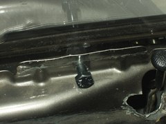 To hold the plexiglass windows in place, I drilled holes in the three tabs in the doors that normally hold the door panel in place. I drilled corresponding holes in the plexi and using bolts lined with rubber fuel line, I bolted them in place.
