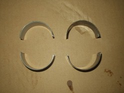 Obviously I wanted to compare the old rod bearings with the new, so I lined them up next to each other. I was honestly a little pissed when I saw that they were almost exactly the same thickness! Turns out my engine was in much better shape than I originally thought. Oh well, now I know.
