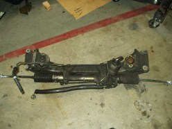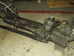 Okay, so now onto the really sketchy part of the operation. I didn't have any help around, as usual, so I lined up the crossmember and engine mounts on a jack and wobbled the whole assembly into place without losing the whole damn thing. I don't recommended this be done alone. I could have easily dropped it, cracked the crossmember or steering rack. Everybody gets there thrills in different ways, huh? Of course the engine mounts didn't line up with their holes; what a shock. The C-clamp came in very handy here as well. I smashed those bastards into place and mounted them up; then I installed the crossmember bolts and sighed a huge breath of relief. Now the engine is supported and the only big PITA left is the steering shaft. The procedure said to paint or mark the orientation, but good luck getting all that to line up again perfectly; I voted to just realign the steering wheel.